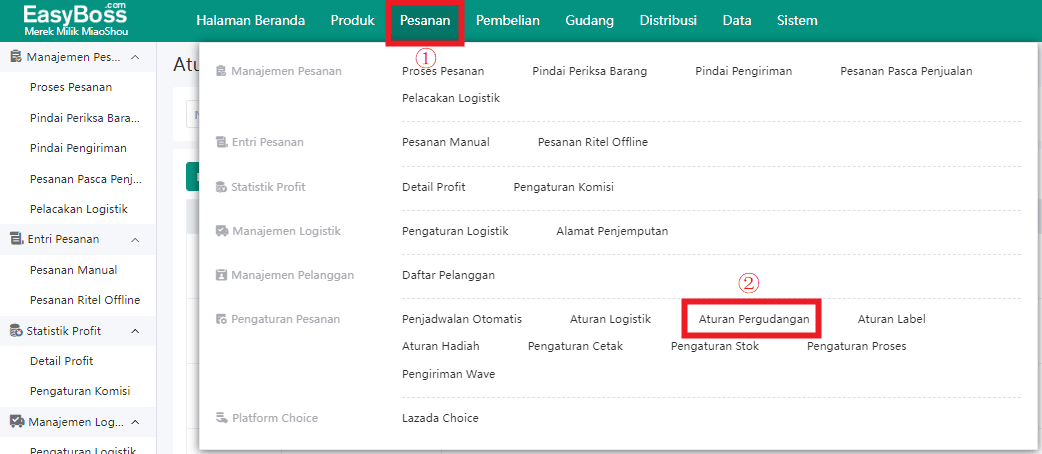 1.Pilih Pesanan => Aturan Pergudangan