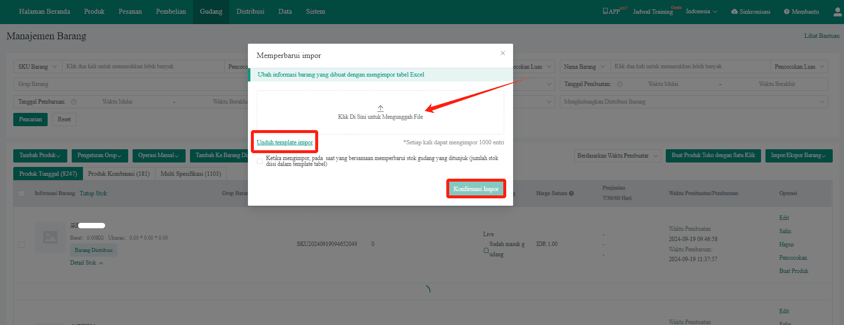 3. Akhirnya unggah file yang sudah diisi, dan klik [Konfirmasi impor]