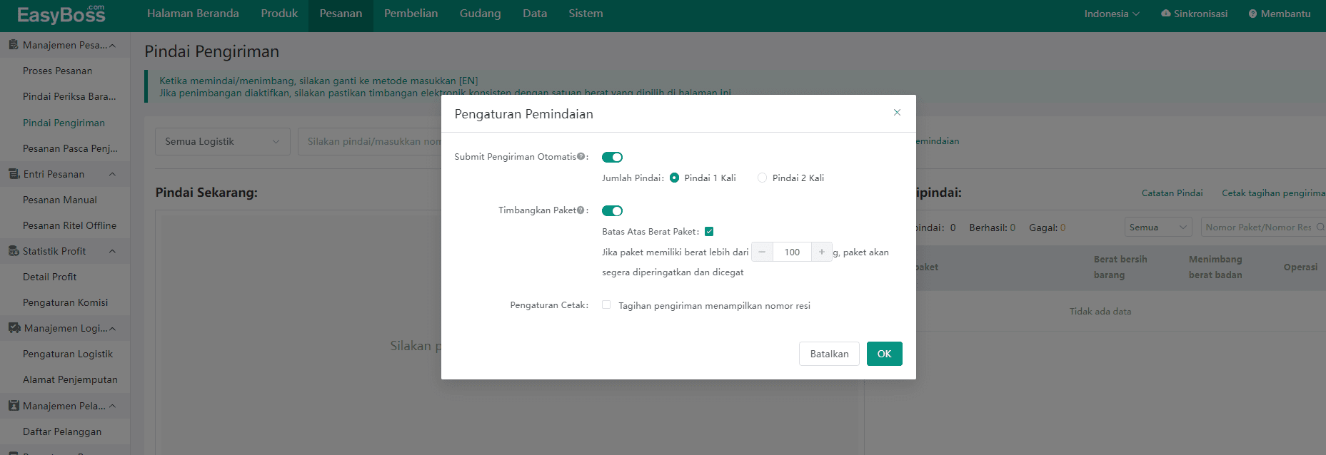 4.Juga dapat centang [Pengiriman Barang Otomatis] di antarmuka ini untuk mengaturkan langsung memproses pengiriman pesanan setelah pindai