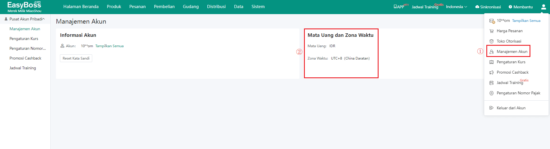 A: Masuk [Manajemen Akun] => [Mata Uang dan Zona Waktu]