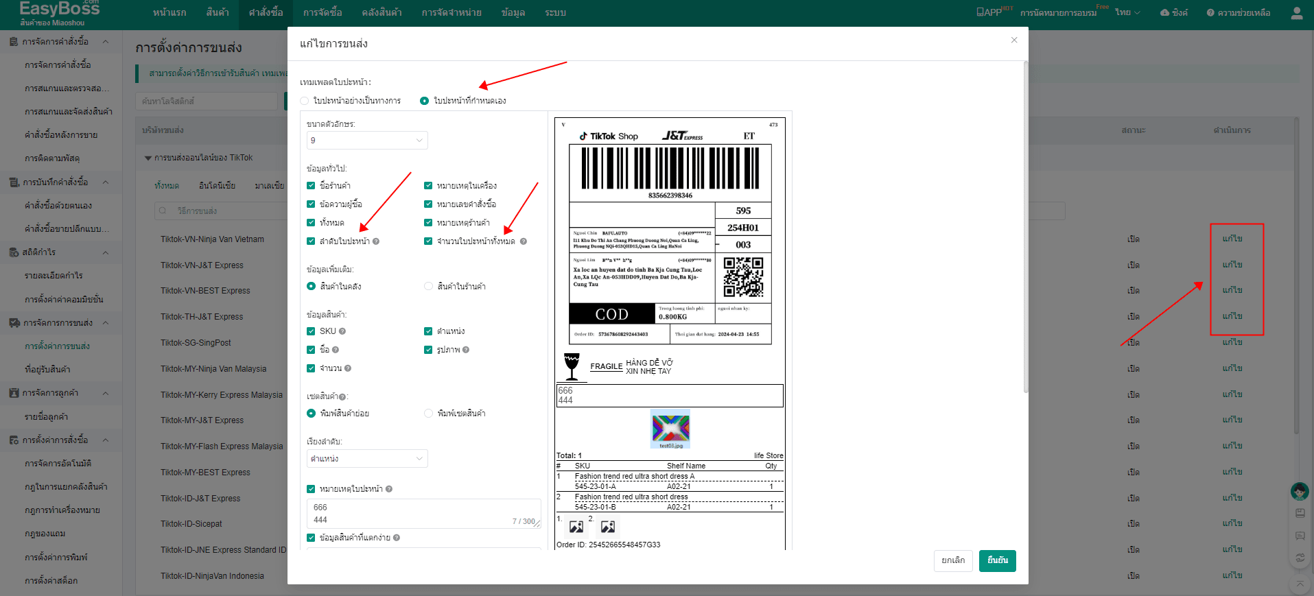 เช่นแพลตฟอร์ม TK การตั้งค่าการขนส่ง - แก้ไข - ใบปะหน้ากำหนดเอง - ข้อมูลสาธารณะ - เพิ่มลำดับใบปะหน้า + จำนวนใบปะหน้าทั้งหมด